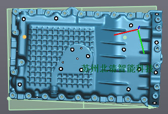 正方兩次掃描數據在掃描軟件中通過公共部分粘貼的標記點位置關系,拼接數據。拼接可以使薄壁件的掃描簡單易操作,拼接數據無拼接誤差。